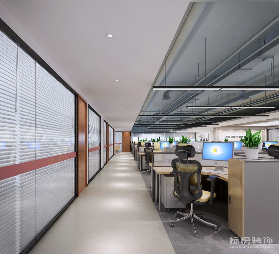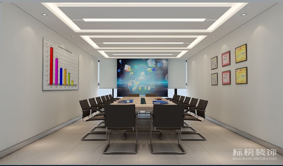 办公室装修需要创造一种专业、有序、简洁的办公环境。为适应办公室灵活多变、舒适装修的要求,设计师在视觉设计上进行了合理规划,强调了层次化绘制。