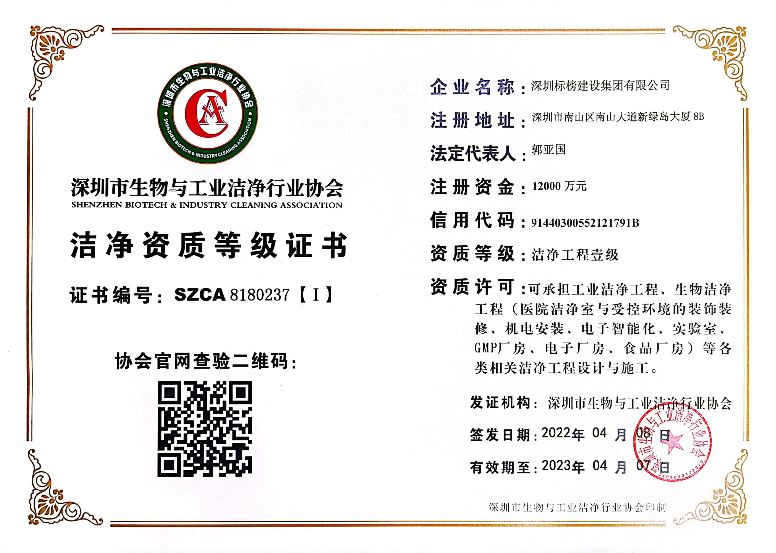 深圳与工业洁净协会1级证书